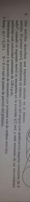Tienes los datos iniciales para cada móvil (posición, velocidad y aceleración angulares iniciales