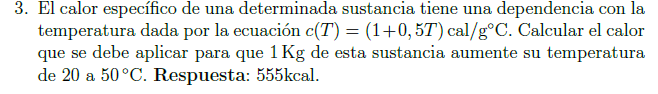 sustituyes valores y expresiones y queda (M = 1 Kg = 1000 g, c = 1 + 0,5*T):