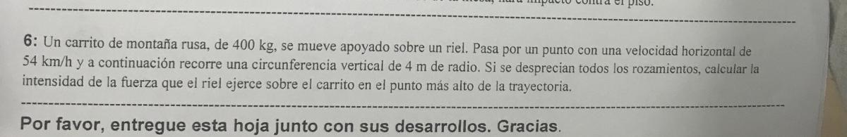 que es el módulo de la acción que el riel ejerce sobre el carro en el punto más alto del aro.