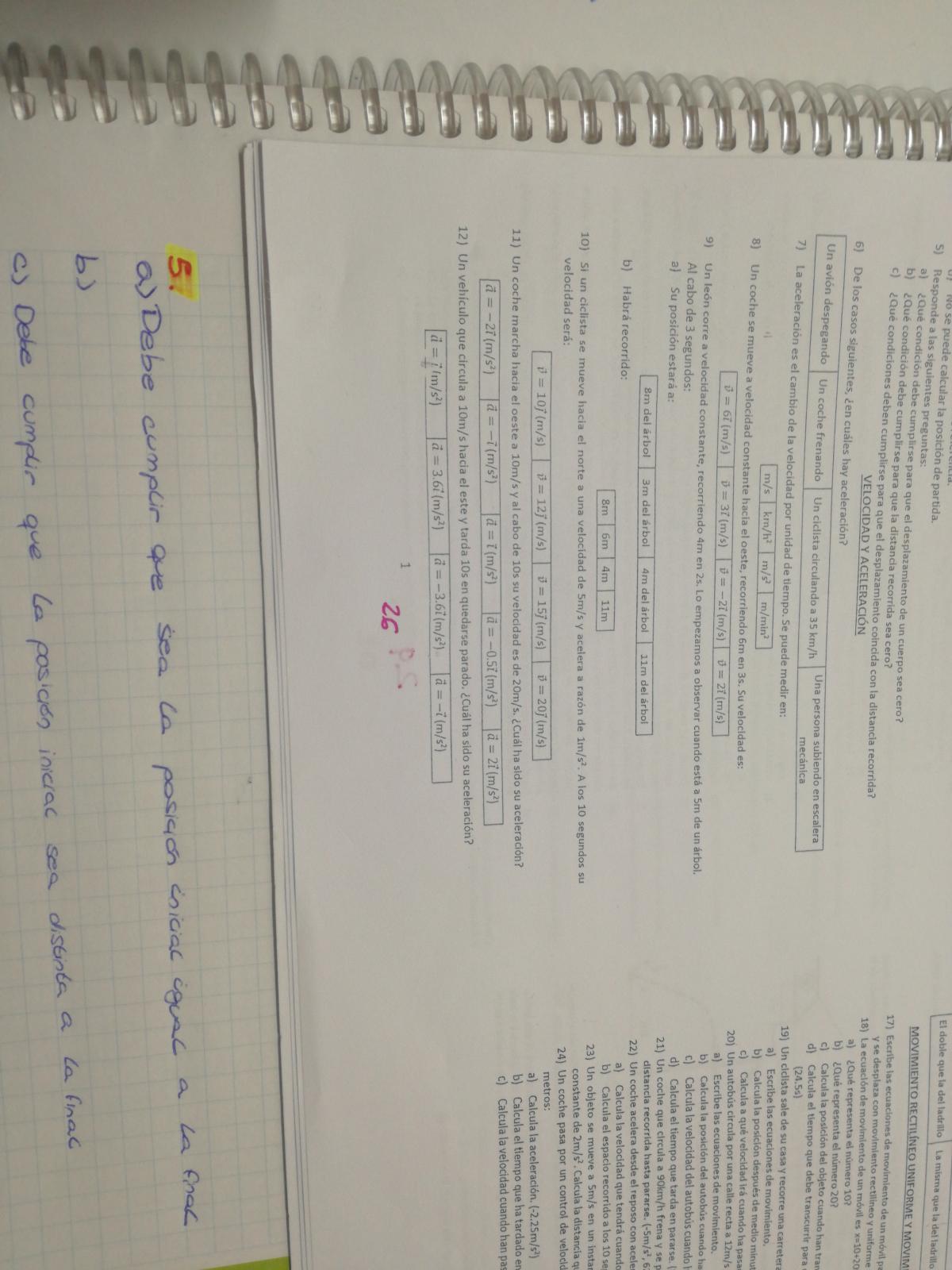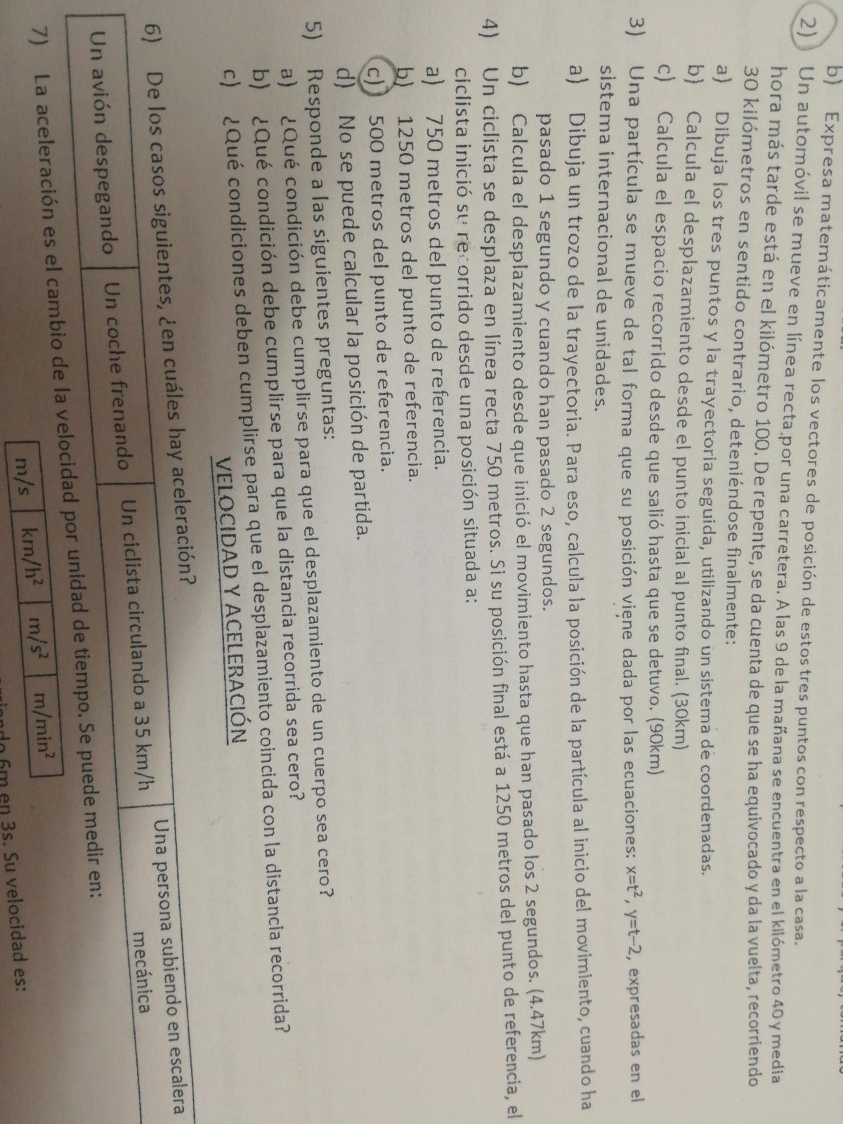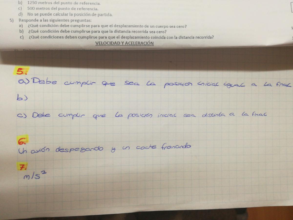 Para mi estan bien el a y el c, respecto al punto b, creo que para que no haya distancia recorrida el cuerpo ni siquiera se debe haber movido...