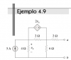 Para fuente independiente de corriente: Tiene una magnitud de 5 A. Tendrá el mismo voltaje que la resistencia de 4 Ω al estar en paralelo, osea 20/3 V (aproximadamente 6.67 V).