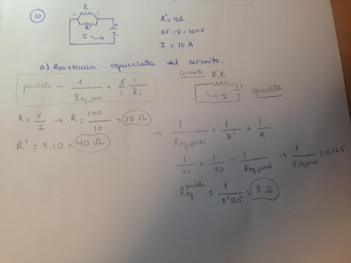 Ademas del punto a) sabemos el valor de la resistencia equivalente. Por lo tanto: (4/5)R = 10 → R = 25/2 = 12.5 Ω