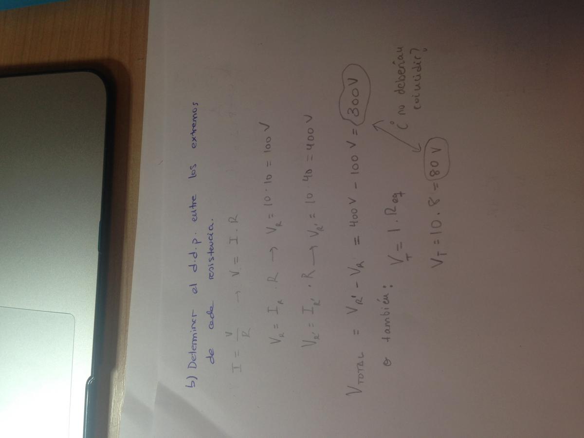 b) ¿Cuál es la d.d.p. entre los extremos de cada resistencia?