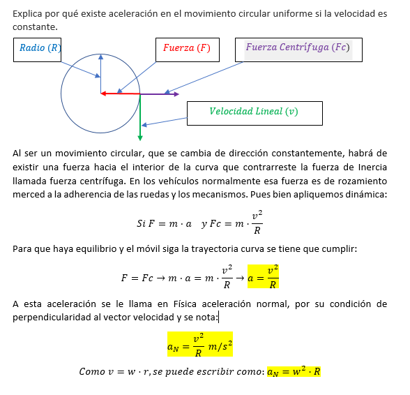 Explica por qué existe aceleración en el movimiento circular uniforme si la velocidad es costante