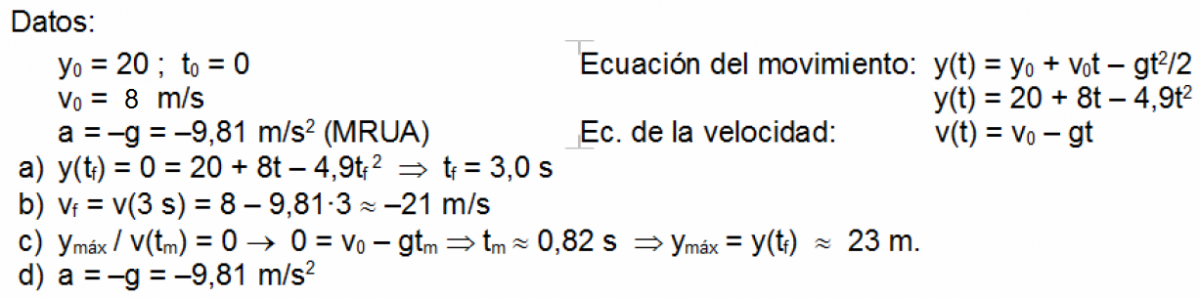 velocidad de 8,0 m/s, desde la terraza de un edificio situada a 20 m del suelo. Supón despreciable el