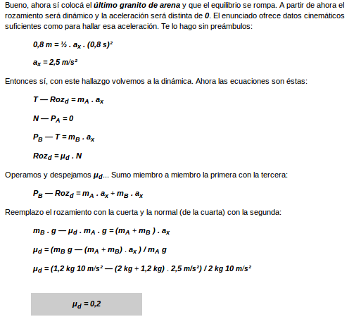 Y ahora viene el momento crucial. Prestá atención. En la primera parte del ejercicio (la parte estática) esa aceleración también vale 0.