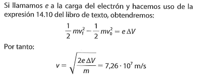 1/2·9,109 382 91×10−31 ·v2=(1.602 176 565×10−19)15000 → La carga del electrón es negativa pero la tomamos en valor absoluto.