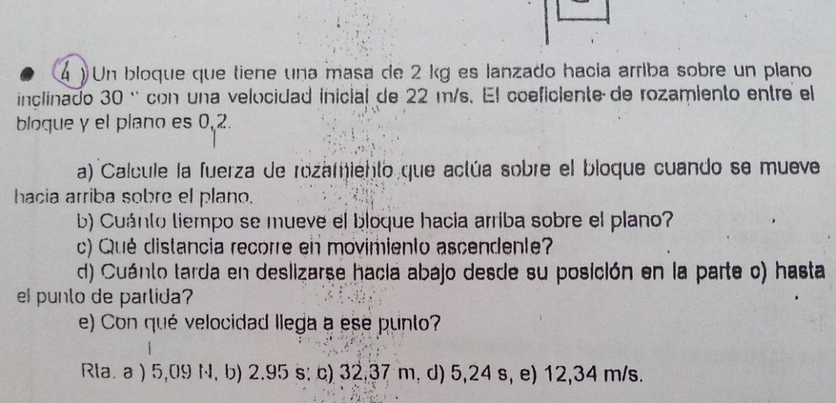 una bala de 1g de masa se dispara horizontalmente contra un bloque de madera de masa 19g que descansa sobre una superficie horizontal. el coeficiente de friccion cinetica entre el bloque y la superficie es de 0,1. si la bala queda incrustada en el bloque y se desplaza 12,5m. determine la rapidez inicial de la bala.