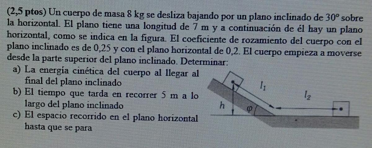 (a) Hasta que altura puede subir por una rampa de 35º antes de parar.