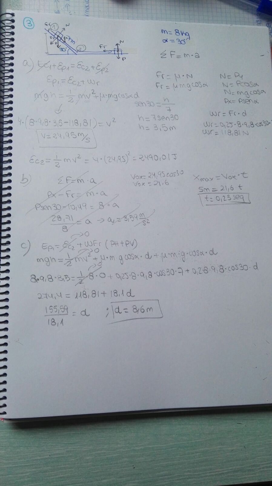 Pero luego veo que sumas las pérdidas de energía ya está bien.como lo haces , ojo que acá no se suma el trabajo de la fuerza de fricción porque acá el trabajo es negativo sino la perdida de energía debido a la fricción que es lo mismo pero en valor absoluto (positivo)