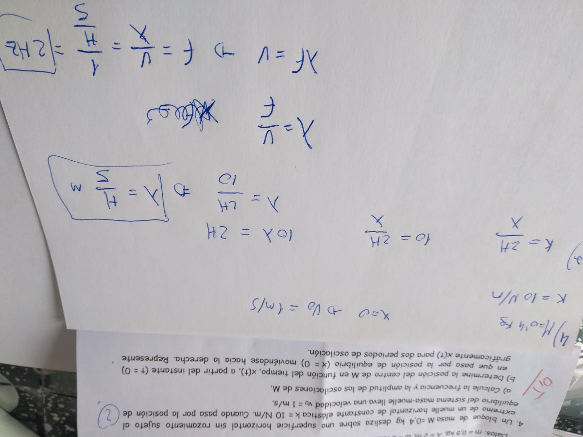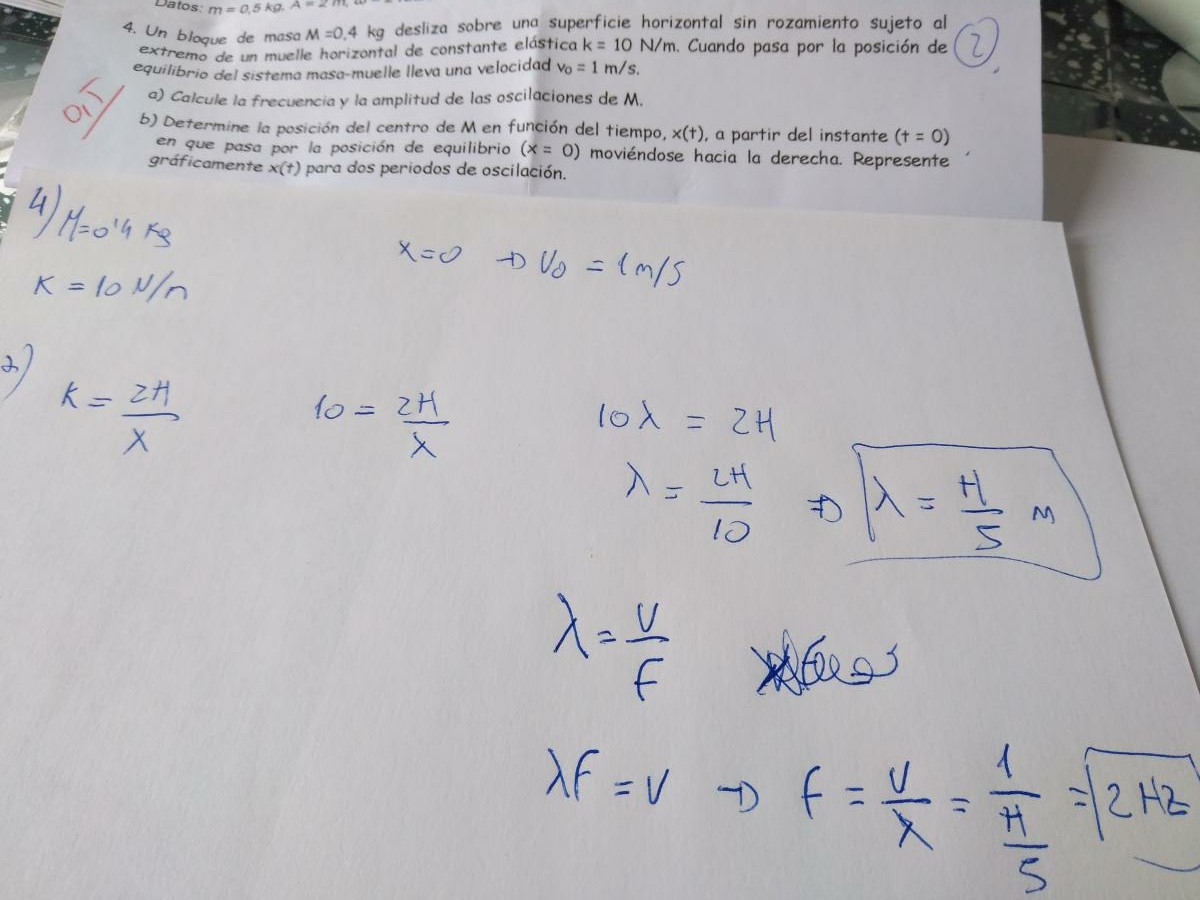 La frecuencia la tienes bien, te falta la amplitud que la obtienes igualando la energia cinetica a la elastica