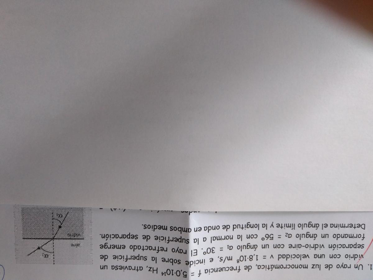 FISICA OPTICA Ley de SNELLPara hallar la longitud de onda has de recordar que el indice de refraccion se define como n=c/v siendo c la velocidad de la luz en el vacio, a partir de ahi sabes que v=f·λ siendo f la frecuencia