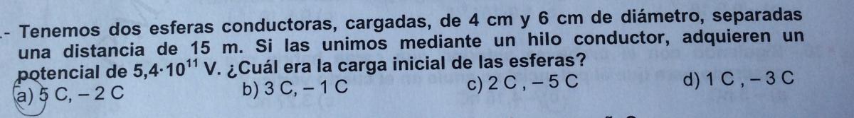 Luego, al conectar ambas esferas se redistribuyen las cargas y tienes: