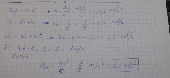 No estoy muy de acuerdo con el apartado (b) cuando calcula la aceleración normal, utilizando en el numerador la formula V=Vo+at. Ya que esto no es un movimiento rectilíneo.