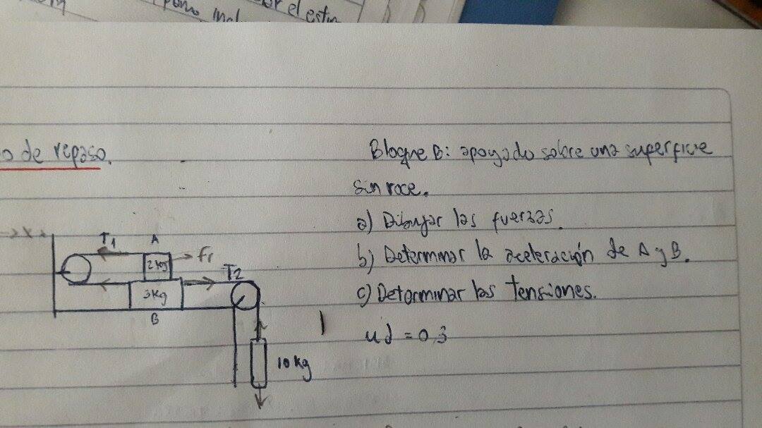 Yo había planteado para el bloque A: T1 - Fr1 = m1.a1