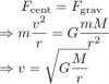 Donde m es la masa del cuerpo, M es la masa generadora del campo, r el radio de la órbita, G la constante de gravitación universal, y v la velocidad