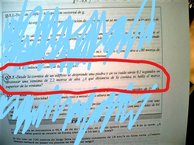 y designamos con b + 2,2m la posición del marco inferior de la ventana, que el móvil alcanza en el instante t2,