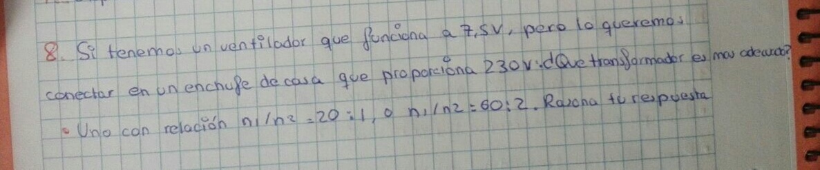Buenas. Tenía un problema acerca de los transformadores en la electricidad. No se que quiere decir la fórmula de estos... y no se como resolver el problema de la otro foto, no entiendo las opciones que me dan...