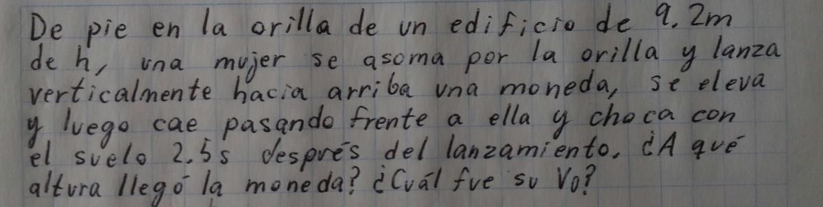 a) Para subir del punto A hasta el punto B, la moneda ha tardado un tiempo ( t ) y ha alcanzado una altura ( h )
