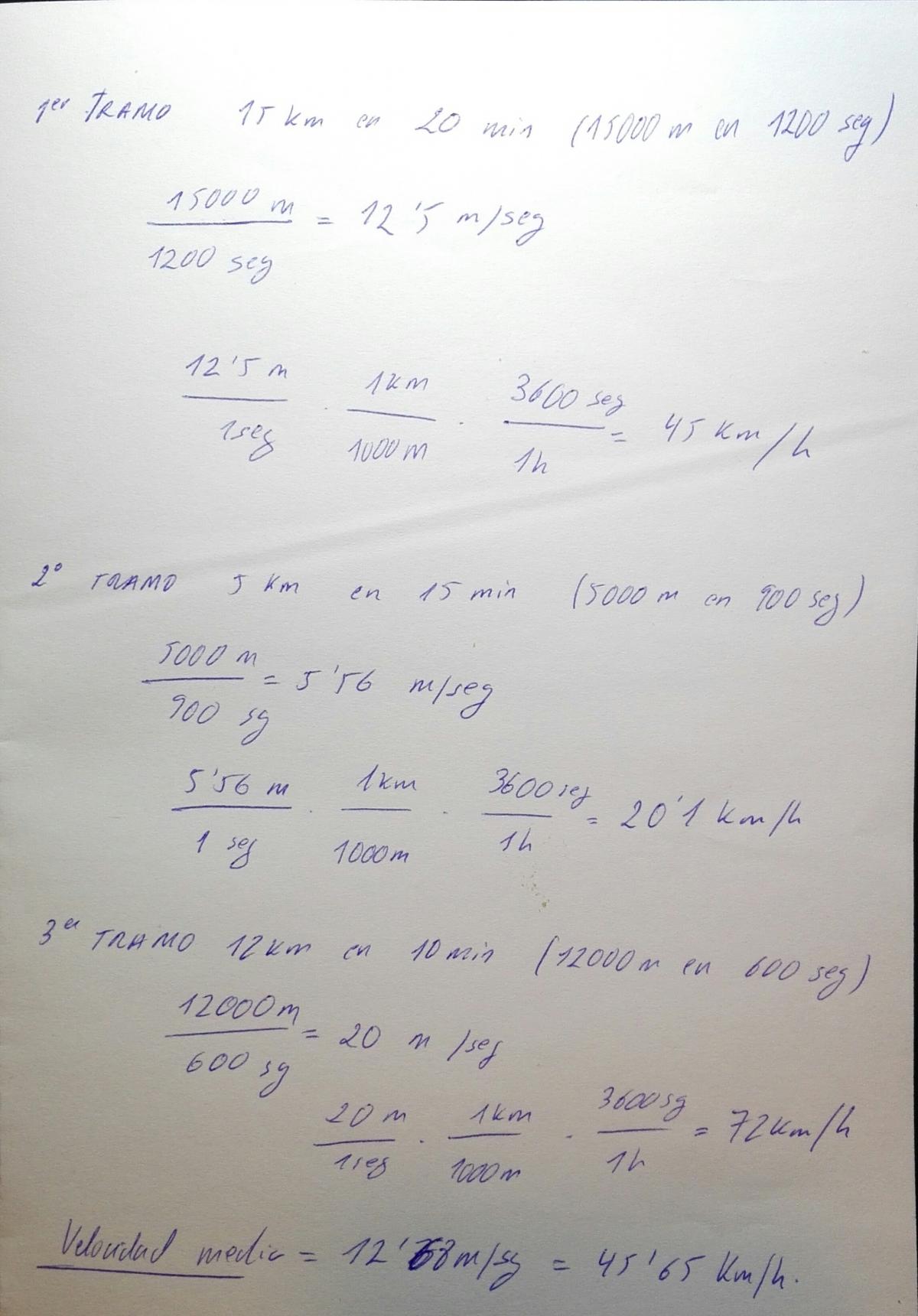 Al final, una vez que tengo los 3 tramos, calculo a velocidad media tanto en m/sg como en km/h, pero basta con calcular la media en una de las unidades por ejemplo en m/sg, y después por factores de conversión pasarlo a km/h.