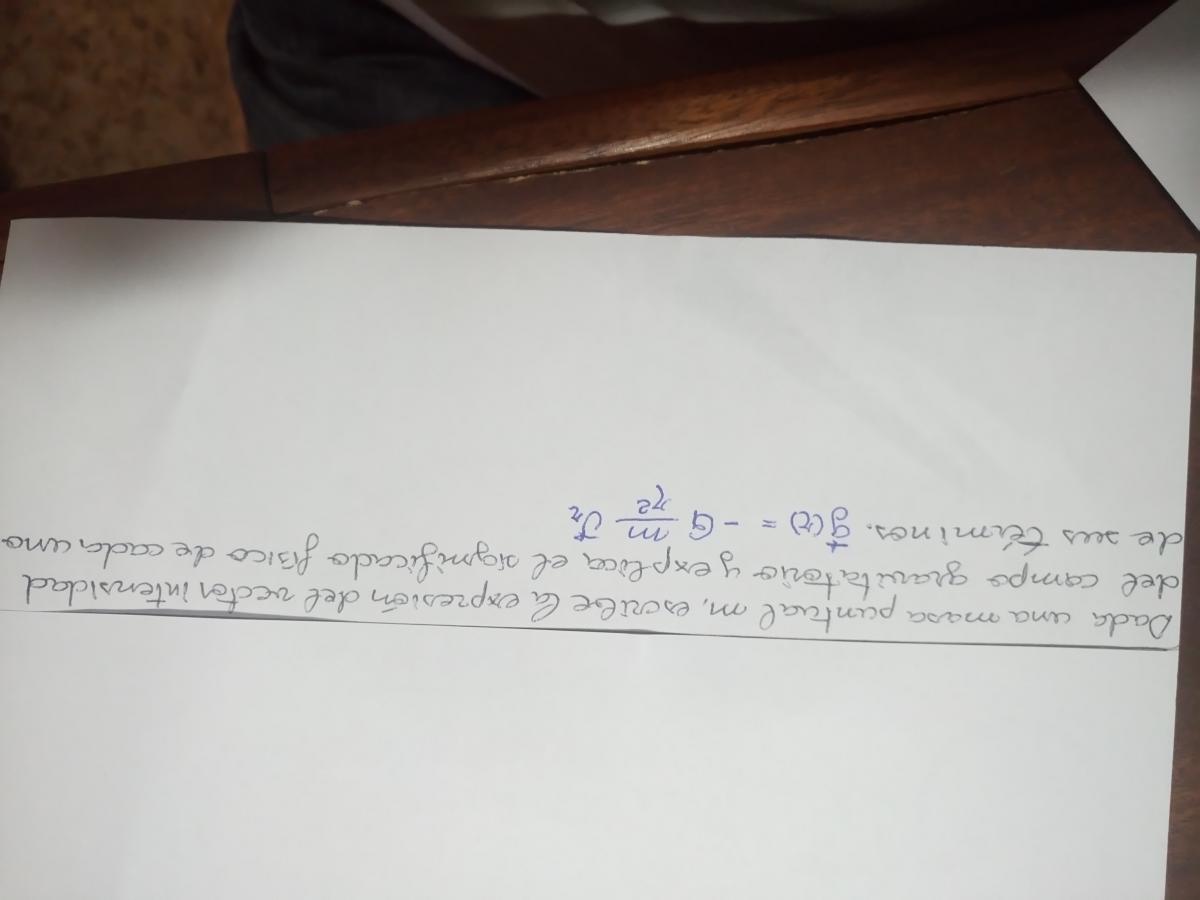 y el signo negativo (-) indica que la dirección del campo gravitatorio es opuesta a la dirección del vector ur, por lo que tenemos que el campo gravitatorio calculado en el punto apunta hacia la partícula.