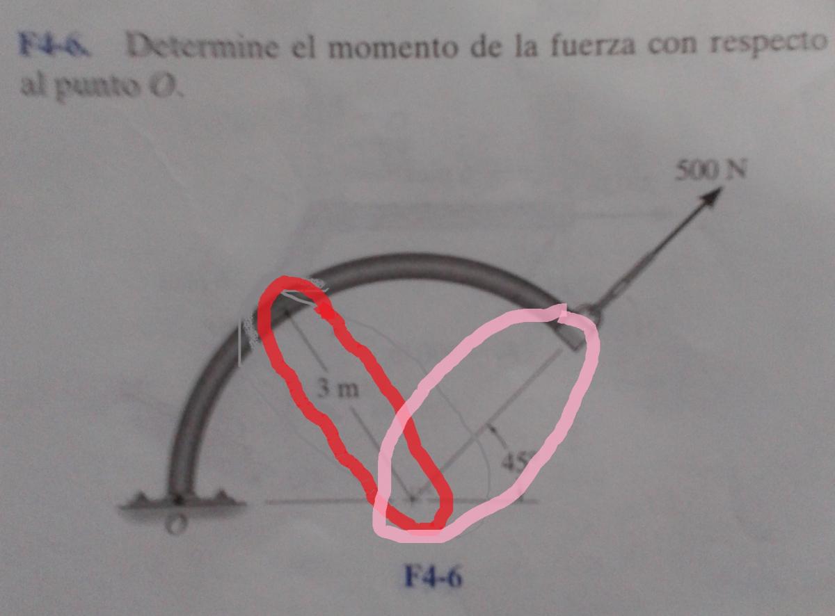 Ayudenmee!!!!!!. buenas amigos, tengo una duda en este ejercicio: Tema: Movimiento de fuerza: mi duda es: en el dibujo sale un arco que tiene un lado (color rojo) con una medida de 3m diagonal, esa medida seria la misma del otro lado (color rosado) de la diagonal donde sale el angulo de 45°?. ![]()