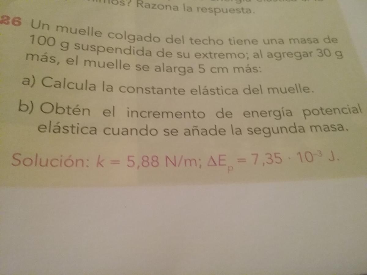 Escribía para ver si me podíais ayudar con este problema de física y química, de la energía potencial elástica (1°bachiller). No lo paro de intentar pero no hay manera de que me salga, gracias unicoos!!