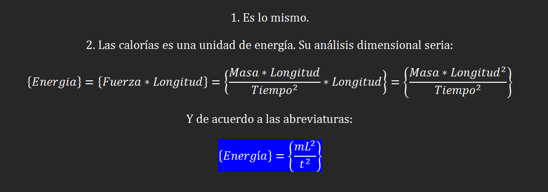 ¿Cómo realizo el análisis dimensional ahí? ¿Kcal tiene unidades de calor, energía, trabajo, o que mismo?... Ayuda