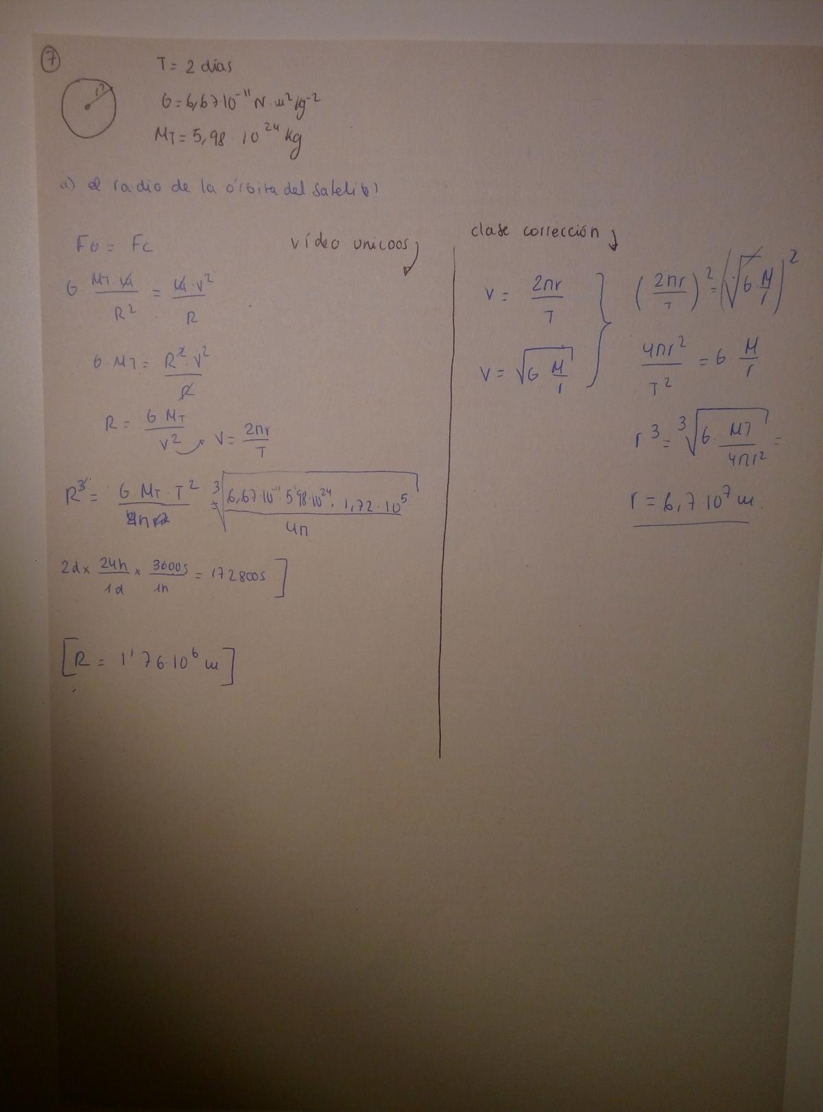7.- Un satélite describe un movimiento circular alrededor de la Tierra. Sabiendo que tarda dos días