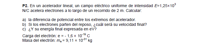 Energia final= 1/2mvf^2 donde vf es la velocidad que calculaste en el literal b) , m es la masa del electron.