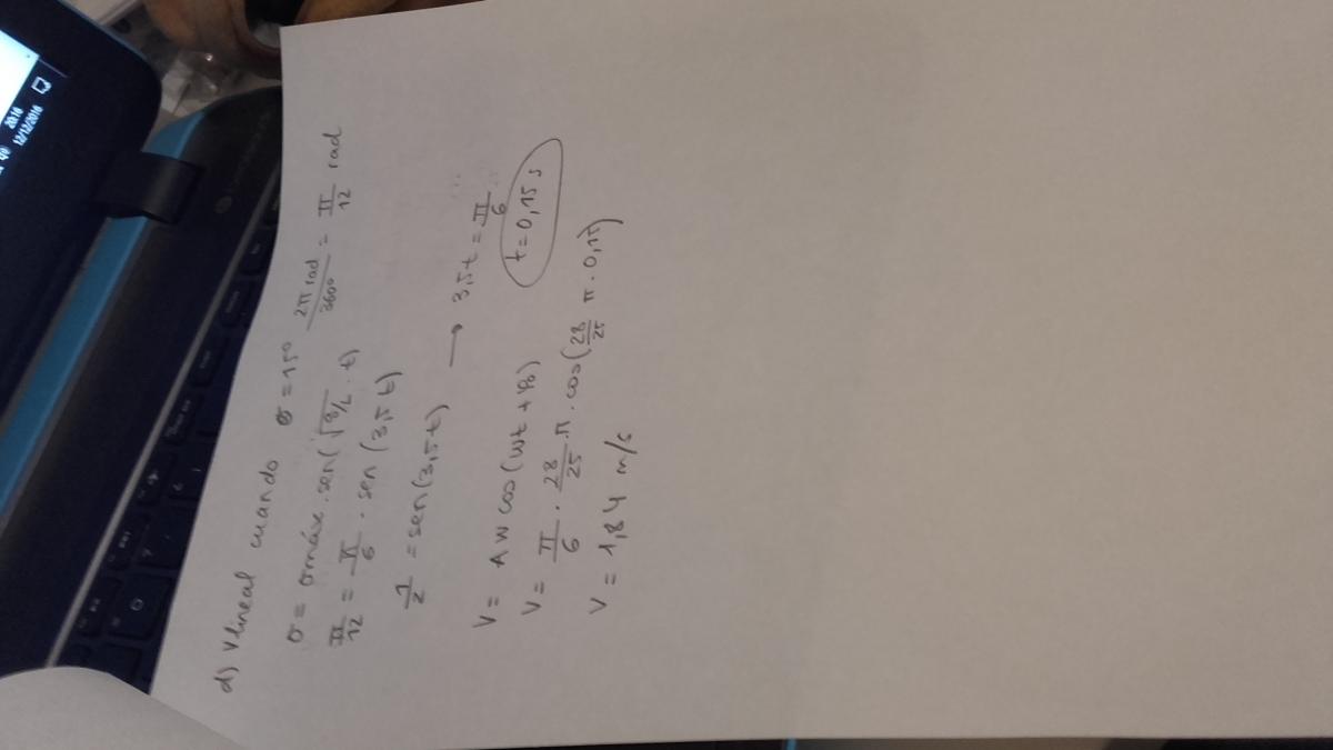 a) la cuerda forma un angulo de 60º con la verticalolaaa buenas, como harian para sacar las ecuaciones de un mas si t dan la grafica x, t y v,t, no logro sacar la frecuencia angular y un par de cosas...No vale hacerlo usando el periodo, creo q el profe dijo que era igualando algo a cero o sustituyendo el tiempo (t) por T o T/2 segun...