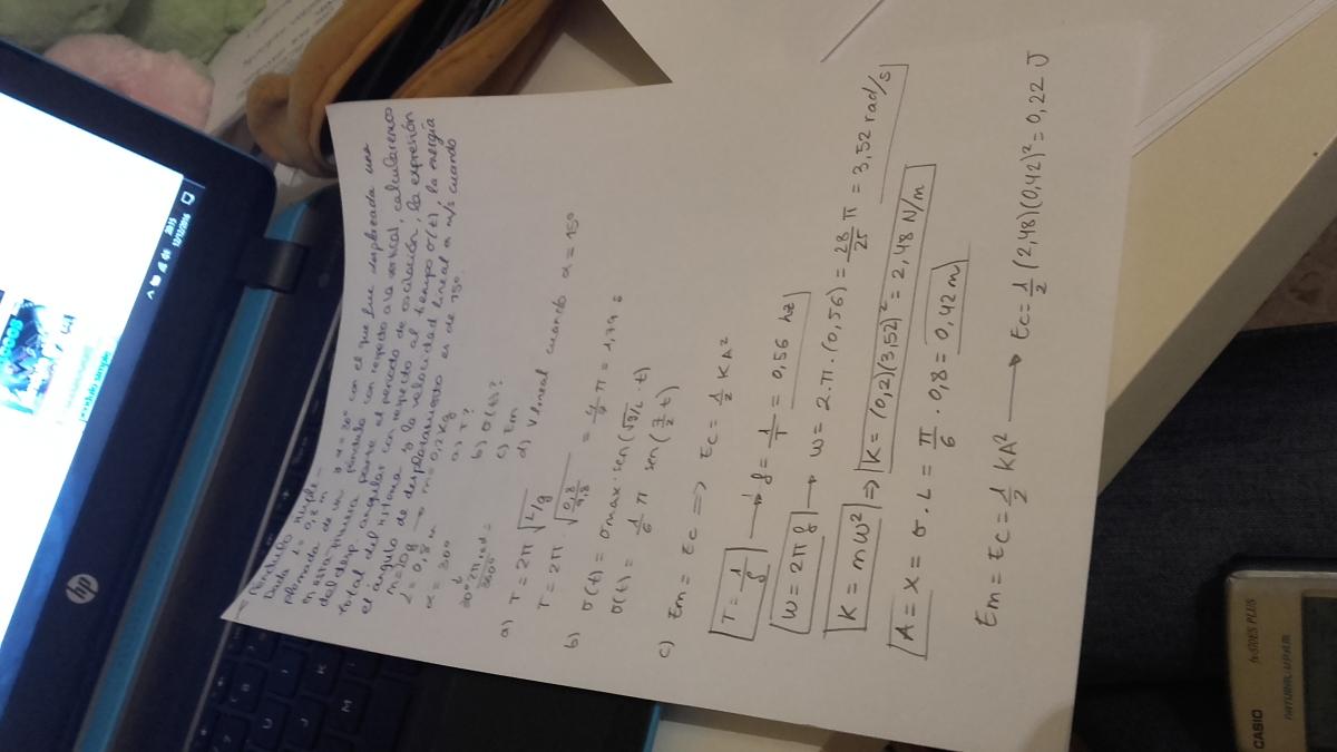 Hooooooola! :D Tengo una dudilla de un ejercicio de péndulo simple, en la cuenta de unicoos está dividido en dos vídeos, os paso el link del segundo porque creo que contiene ambos ''fallos'' míos, https://www.youtube.com/watch?v=TpRe17mtlCw , a mí los valores de la velocidad lineal en 15º y la energía del sistema me dan distinto..., no sé por qué puede ser. Gracias de antemano. Os merecéis todos los reconocimientos posibles!! <3 ![]()