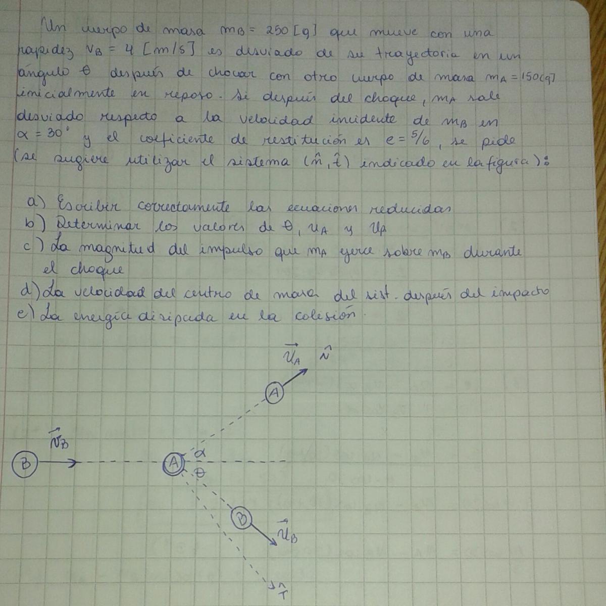 Para la d) tan solo divide la cantidad de movimiento total después del choque entre la masa total del sistema. Ósea (m1v1+m2v2)/(m1+m2). Recuerda que estas velocidades son las que debiste obtener en el inciso b). Y para e) tan solo compara la energía cinética antes del choque (total) con la energía cinética después del choque por medio de la ecuación que ya debes saber, K=½mv2. Para después del choque, la energía te debe dar menor a la energía total. La diferencia entre la energía total y la energía obtenida después del choque es la energía que se disipa. ¿Mejor, Wendy? Me cuentas..