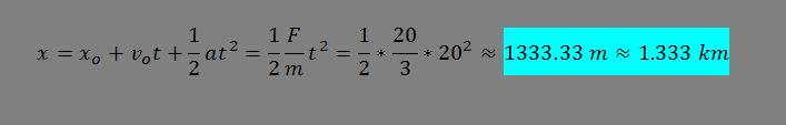 Se aplica una fuerza de 20 N a un cuerpo que pesa 3 Kg durante 20 segundos. Calcular la distancia recorrida por el cuerpo.