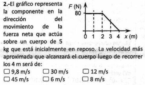 Hola unicoos, en el primer tramo de 0 a 2 metros me da 8 m/s usando la ecuacion complementaria para sacar las velocidades y en el segundo tramo de 2 a 4 metros me da 11,5 m/s y esta mal, se supone que la respuesta 9,8 m/s y no se como llegar a eso. Ya me vi todos los videos relacionados a este tema pero no me sale , si pueden mandarme la resolucion del problema se los agradeceria mucho