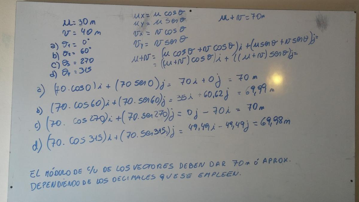 U(x)= 30 ∗ cos 315 = 21,21 U(y)= 30 ∗ sen 315 = -21,21