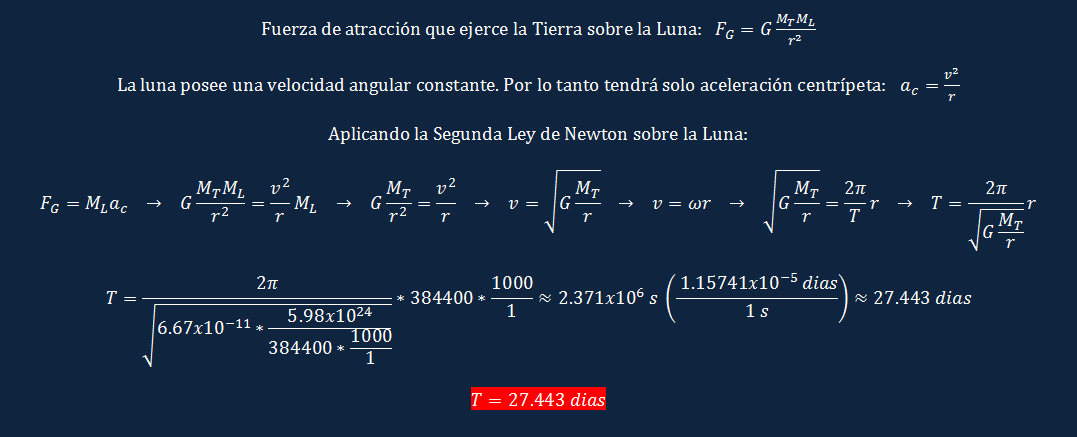 La relación entre la velocidad lineal (v) y la velocidad angular (𝜔) viene dada por la expresión v = 𝜔R. La velocidad angular viene dada por la expresión 𝜔 = 2πf = 2π/T. El factor de conversión de días a segundos: 1 segundo es igual a 1.15741x10-5 días. Se multiplica dos veces por el radio en el periodo simplemente por pereza mía; tal vez se pueda reducir, pero no quise hacerlo. ¿Algo más? J