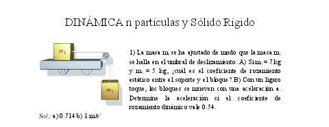 2) Sobre un plano inclinado que forma un ángulo , con la horizontal se colocan dos masas en contacto. Sus masas son iguales y los coeficientes de rozamiento entre el plano inclinado y las masas son 1 y 2 respectivamente, siendo 1 > 2. Hallar: