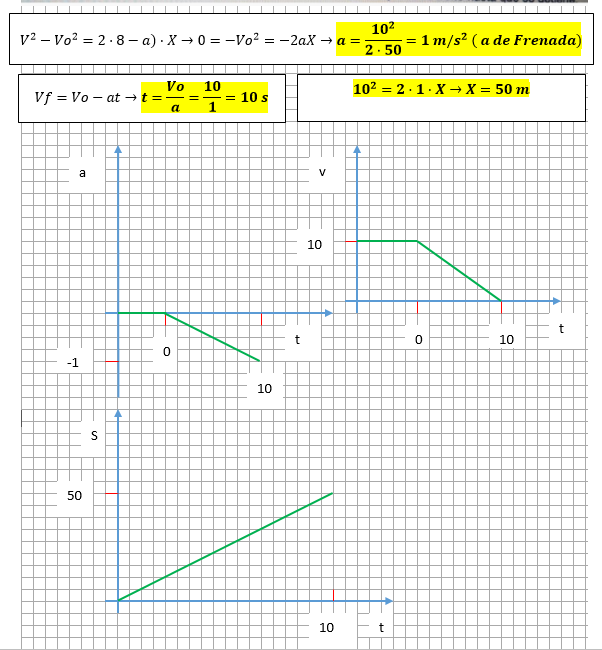 t= (Vf - V i)/ a → t = 0-10/ -1 = t = 10 seg