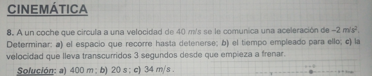 Luego V = 40 + (-2) ·3 v = 34 m/s Luego si multiplico los 10 · 40 = 400 m/s entonces no se aplicar las formulas.