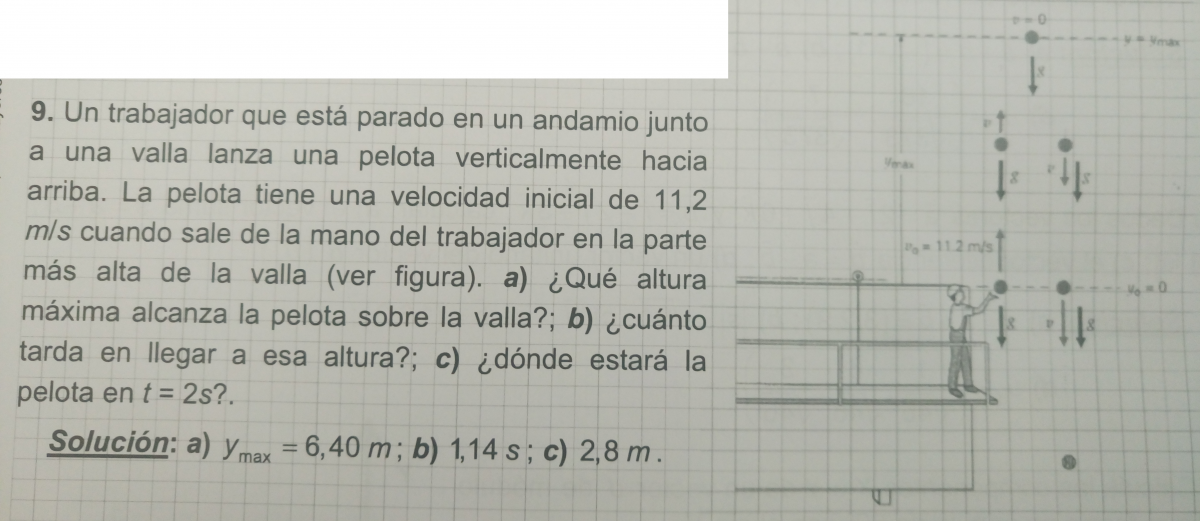 Este ejercicio lo he echo pero al final no se que hacer con C) donde aplico h=h0 +V0·t-1/2g·t2