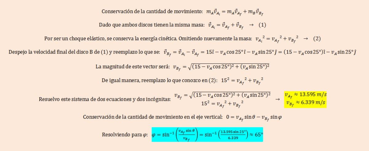 Entiendo que debido al tipo de colisión ΔE=0 y por supuesto se conserva la cantidad de movimiento. No entiendo cómo llegar a las expresiones para sacar los ángulos finales. Agradecería su ayuda ya que estoy por rendir un examen importante.
