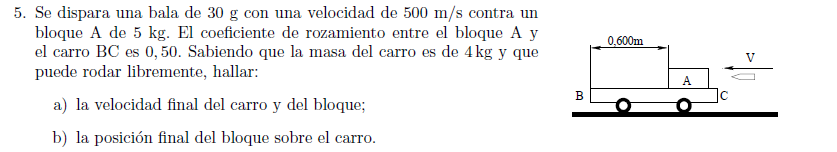 Lo primero que hago es calcular la velocidad con laq parte el bloque mediante la conservacion del momento lineal . y me sale que Vo del bloque es = 3 m/s