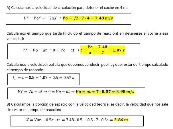 4m, (a) ¿A qué velocidad máxima podremos circular? (b) ¿Qué fracción de los 4m corresponden al tiempo de