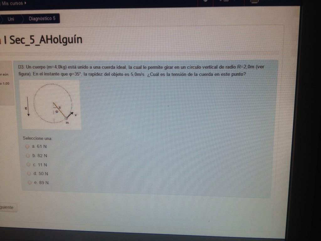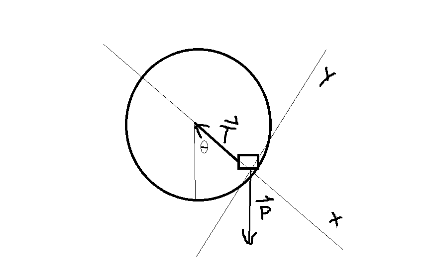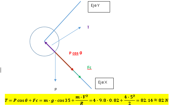 T-P=m.a la aceleración es la aceleración centralita que la podes reemplazar por (v^2)/R