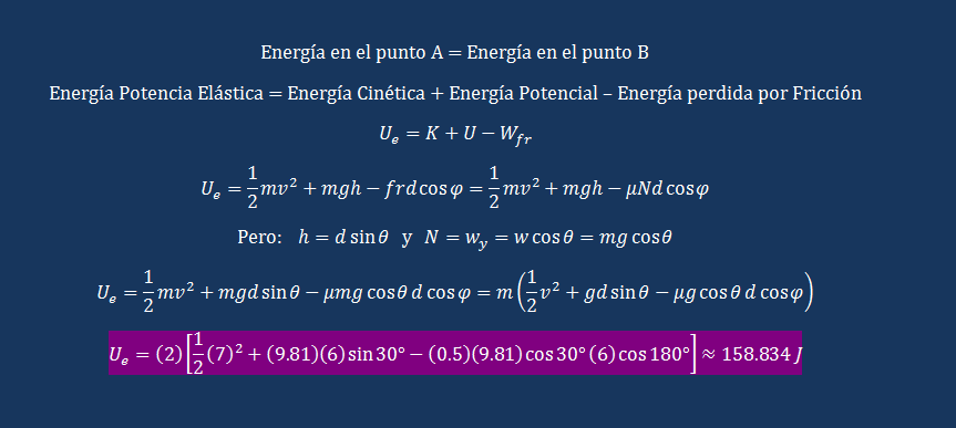 Como está a una altura de tres metros con respecto al punto en que se detiene (Le consideramos altura cero) tenemos Ep=m·g·h=2·10·3s=60 Julio=60 Julios