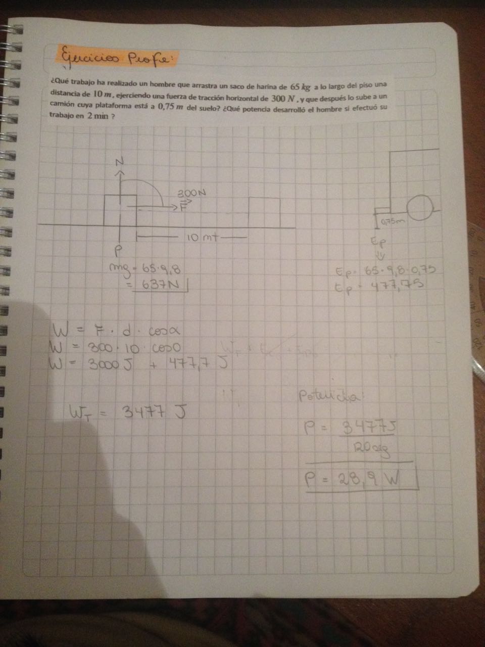 b) Indica qué fuerzas actúan sobre la masa y calcula el trabajo realizado por cada una de ellas durante una revolución.