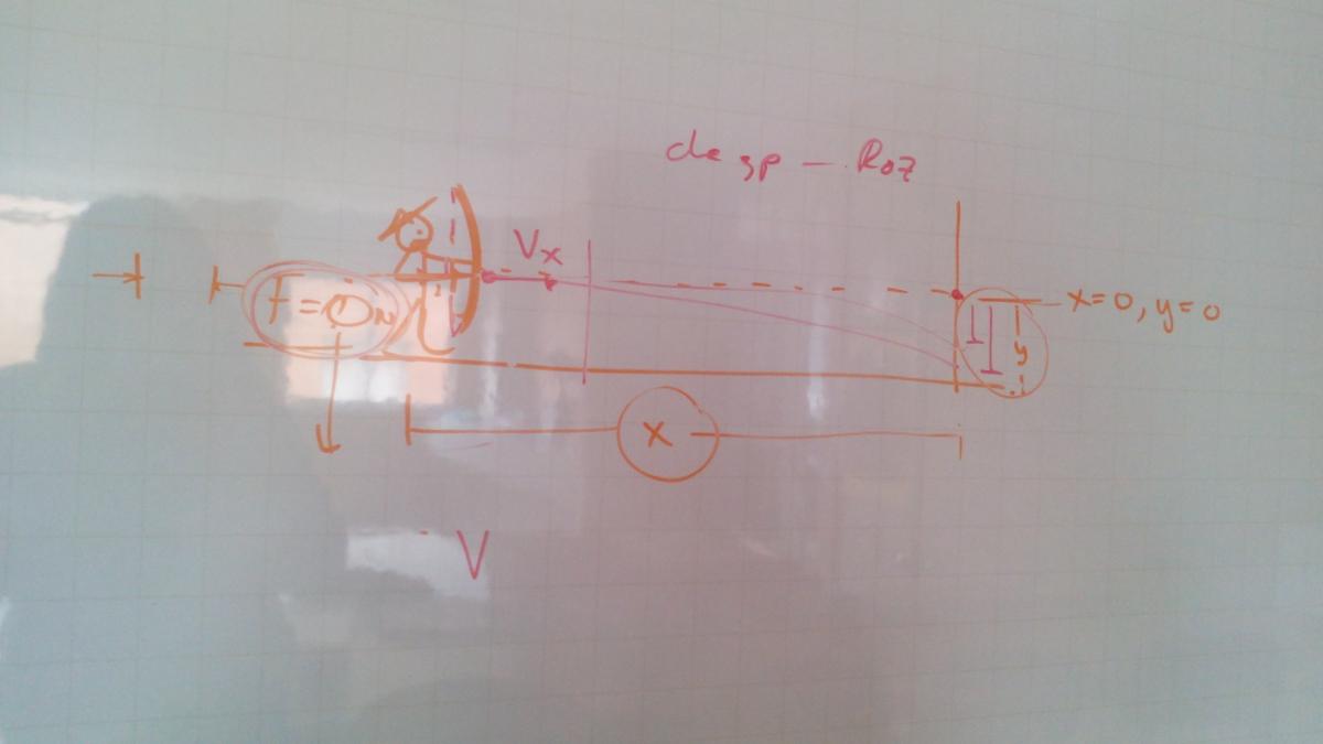 Hola tengo una duda, si un hombre con una flecha y un arco, desde una posicion X que se varia 3 veces, por cada una des estas se lanza la flecha 4 veces. Al lanzar la flecha esta realiza un movimiento semi parabólico y quedara incertada en la pared a una altura Y ,que variara por cada lanzamineto. ¿Cúal es la relacion entre X y Y? ¿Qué se puede decir respecto a la velocida? ¿Cómo se puede realizar las graficas (dispersion o barra)de esta situación?¿con todos los datos o solo promedios? ¿Una de posicion-tiempo y otra de altura-tiempo? Gracias. Agradeceria muchos si alguien pudiera resolver mis dudas.![]()