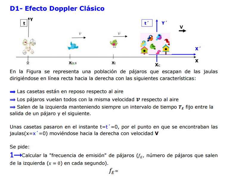 Tengo una duda con ese ejercicio, no se como calcular esa frecuencia de emision, creo que es algo relacionado con la frecuencia del efecto doppler analogamente para el pajaro..espero respuestas..Saludos
