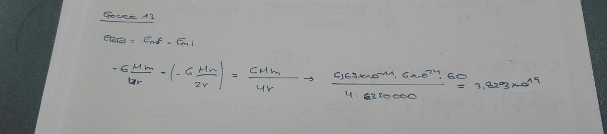 Emfinal = -G.M.m/(2R) siendo R=2.Rt... Por el principio de conservación de la energia mecanica Emfinal=Eminicial = -G.M.m/(4Rt).